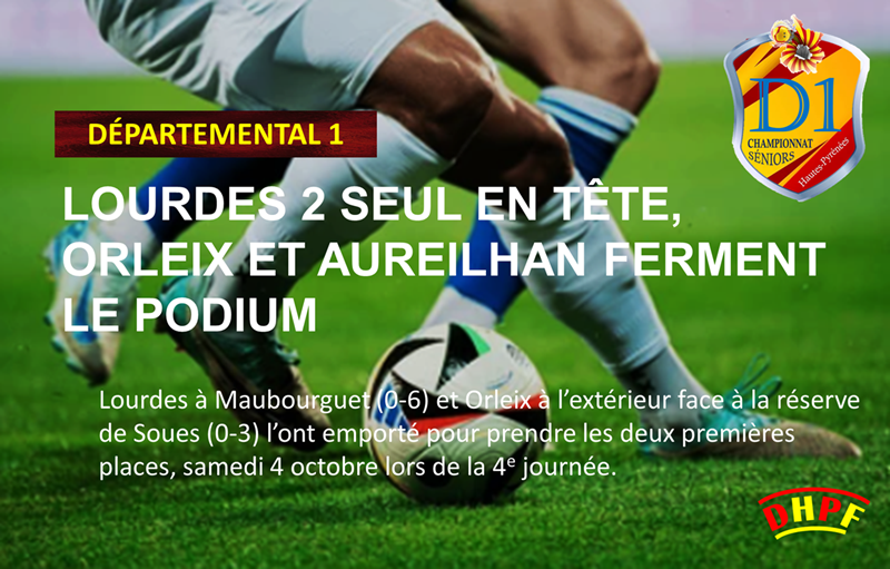Départemental 1 – 4e journée : Lourdes 2 toujours impériale, Orleix et Aureilhan tiennent la cadence ! Encore une journée animée et riche en buts dans ce championnat de D1 décidément spectaculaire. Toutes les rencontres se sont jouées ce samedi 4 octobre, avec des coups d’envoi répartis entre 18h et...
