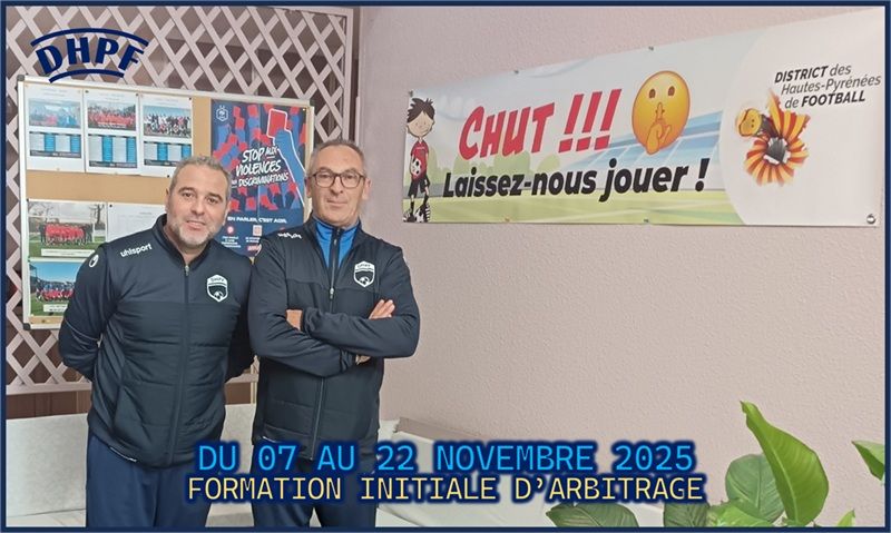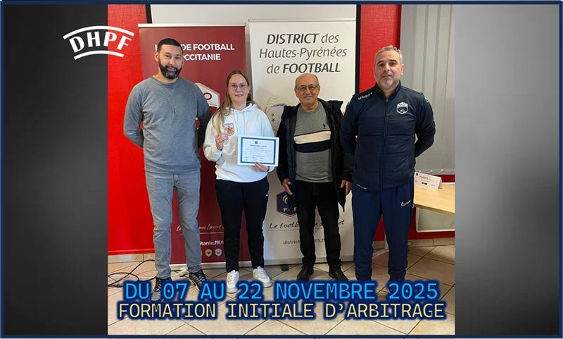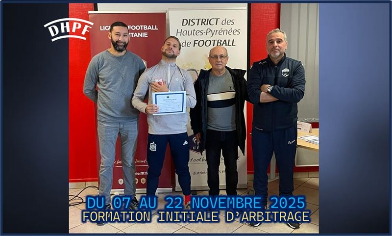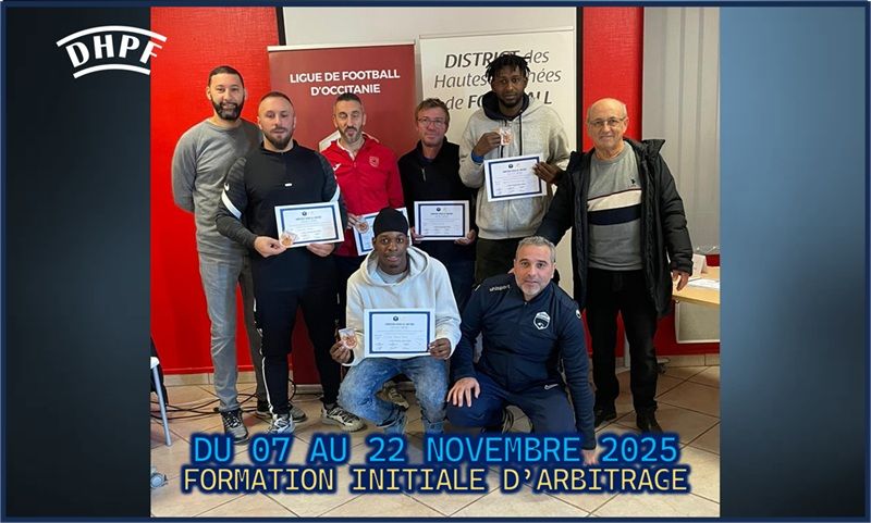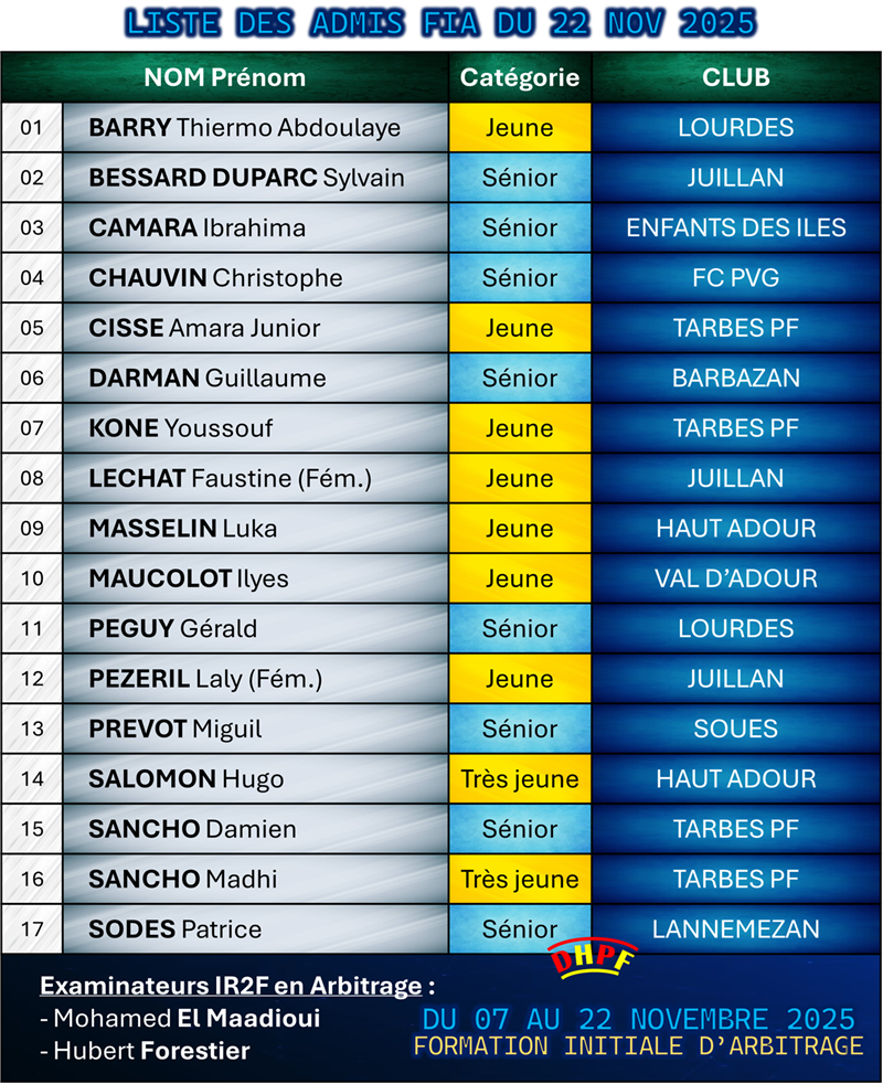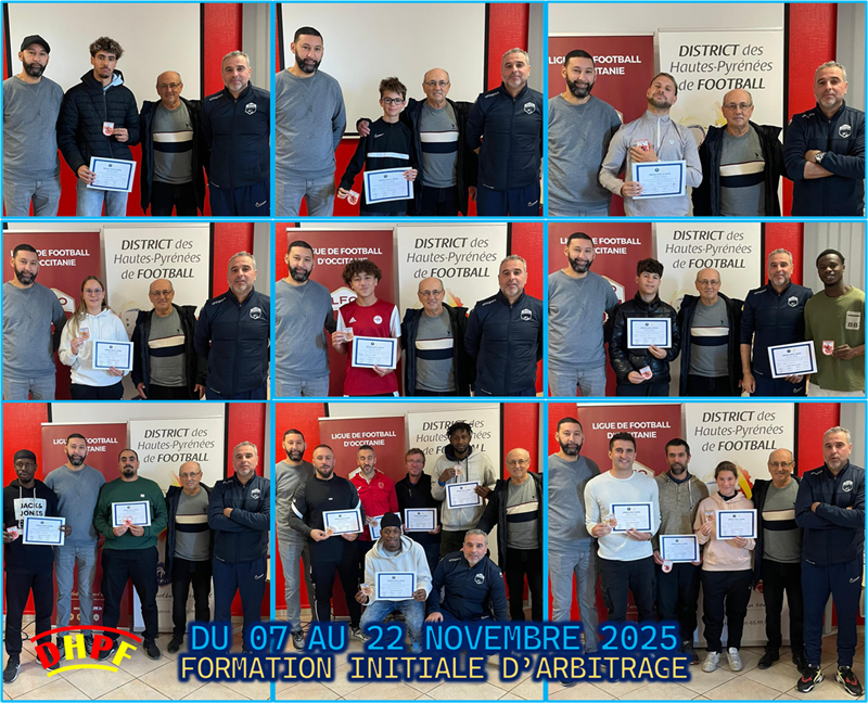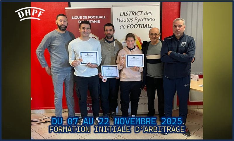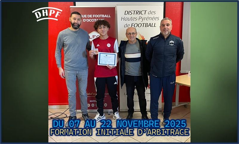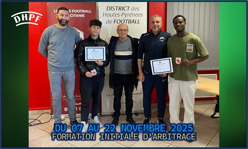Samedi 22 novembre 2025, au siège du District des Hautes-Pyrénées, s’est déroulé l’examen final de la Formation Initiale d’Arbitrage. Dix-sept candidats sur dix-huit ont brillamment réussi leur épreuve et sont désormais admis à la stagiarisation. Ils pourront dès à présent avec leurs clubs solliciter une licence d’arbitre afin de débuter officiellement leur parcours sur les terrains du département.