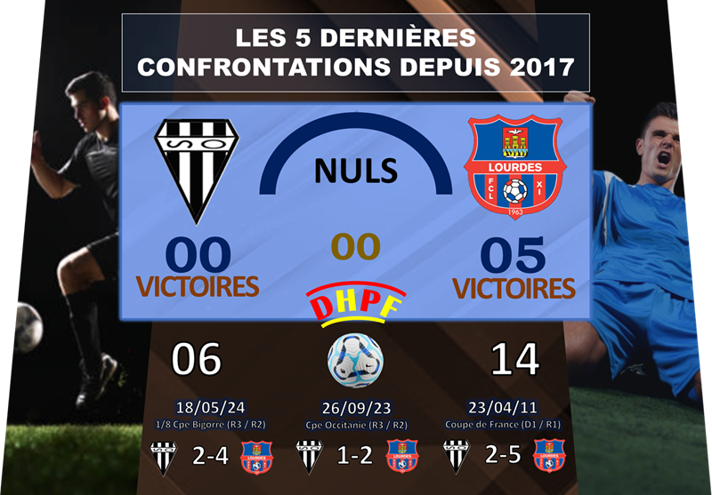 Ils tenteront aussi de poursuivre leur série de succès face à Séméac, une équipe qu’ils dominent historiquement : la dernière victoire séméacaise remonte en effet au 6 décembre 2014, en Promotion Honneur (équivalent R3 aujourd’hui), sur le score de 1-2 à Lourdes (Equipe réserve). Depuis, le bilan est sans appel : six défaites consécutives pour le SO, toutes compétitions confondues.