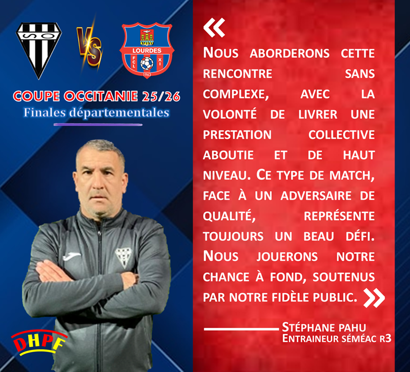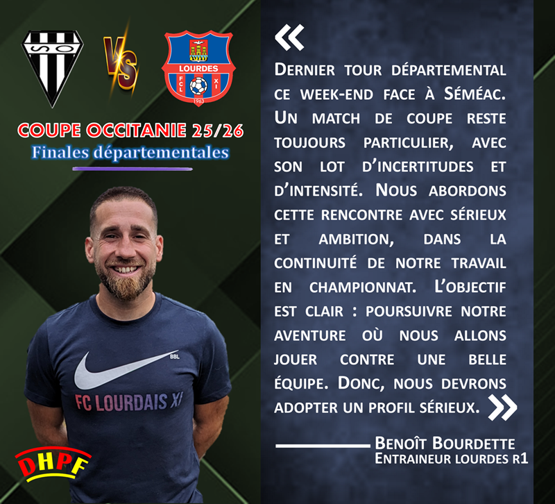 Cette rencontre entre le Séméac Olympique et le FC Lourdes XI s’annonce intense et indécise. Séméac, deuxième de sa poule et porté par une dynamique positive, aura à cœur de créer la surprise face à un adversaire de R1 habitué aux grands rendez-vous. De son côté, Lourdes cherchera à confirmer son retour en forme et à réaffirmer son rang dans le football haut-pyrénéen.