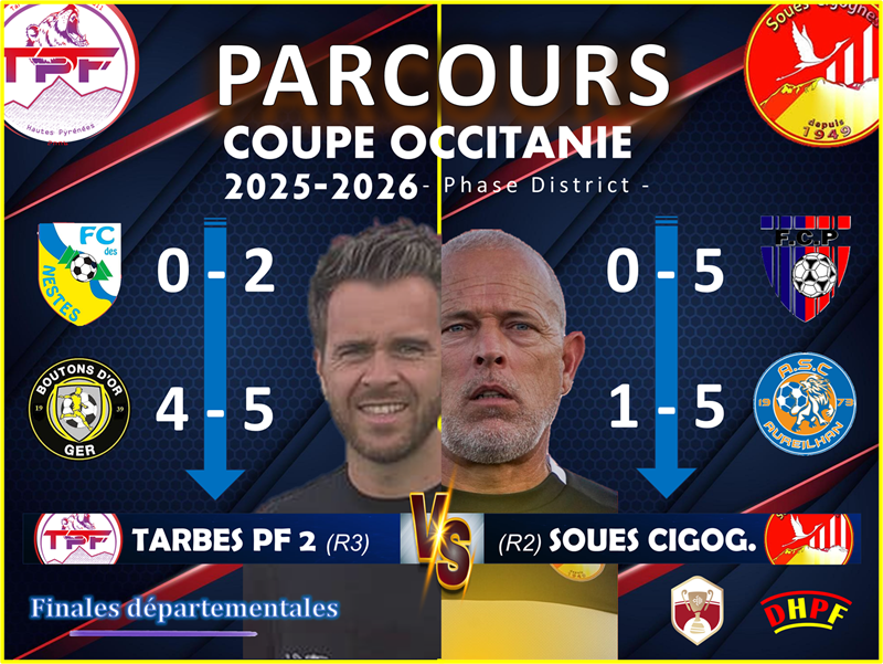 Au-delà du résultat, c’est un véritable choc du football bigourdan qui s’annonce, entre deux clubs formateurs et attachés à leurs couleurs. Un match de prestige, à ne pas manquer, qui viendra clôturer en beauté ce week-end 100 % Finales Départementales de la Coupe Occitanie Intersport dans les Hautes-Pyrénées.