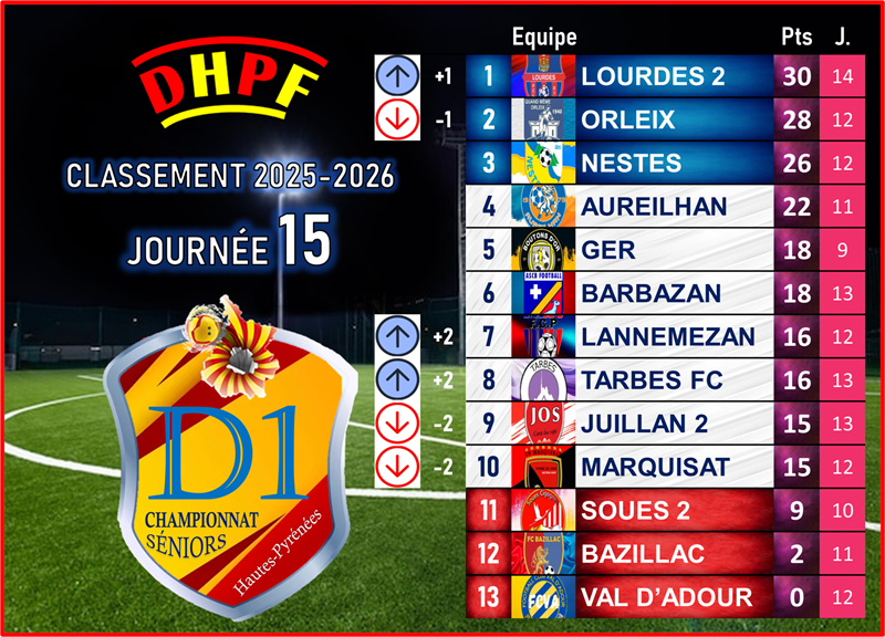 Après plusieurs week-ends hachés par la météo, la 15e journée de Départemental 1 du District des Hautes-Pyrénées de Football a enfin pu se disputer dans son intégralité. Six matchs, six rencontres menées à leur terme, offrant un véritable instantané du championnat… et confirmant une chose : rien n’est figé, à aucun étage du classement.