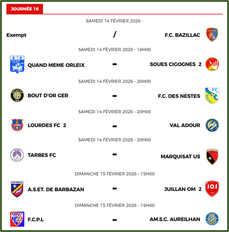 Progamme de la prochaine journée (J16)