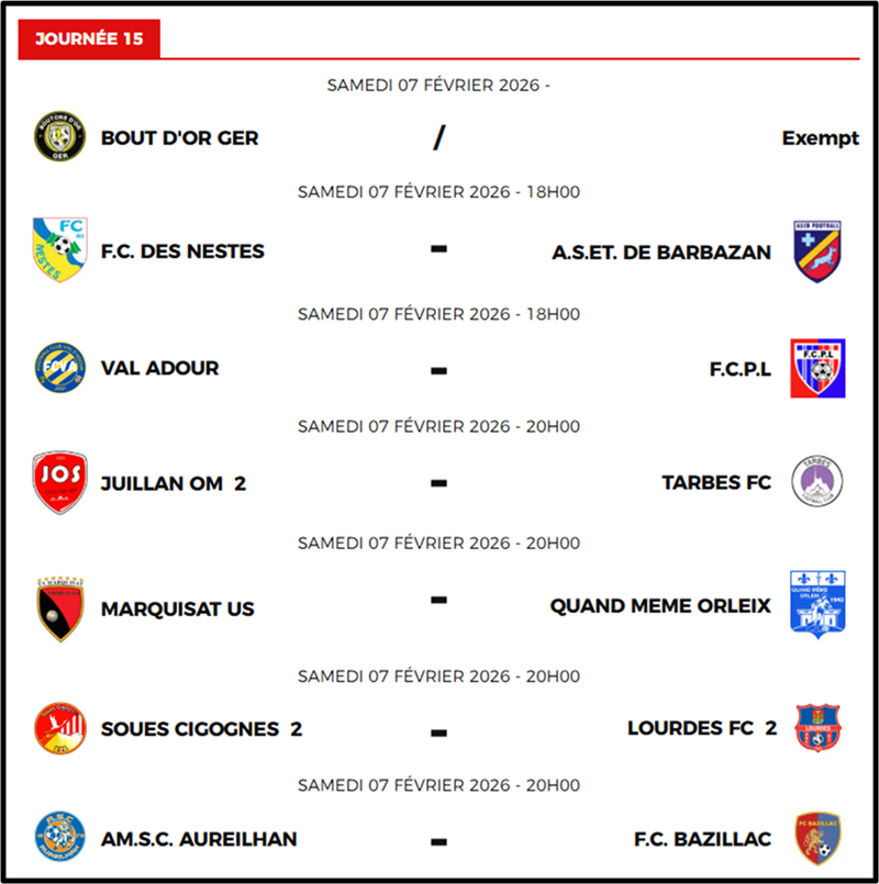 Dans l’autre rencontre disputée, Lourdes s’est incliné à domicile (1-2). Une défaite qui confirme une période plus délicate pour une équipe pourtant bien armée offensivement, avec 35 buts inscrits, l’une des meilleures attaques du championnat.