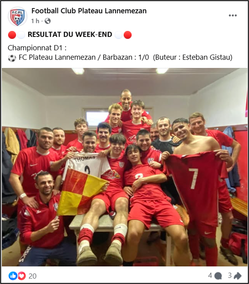 🔵 Lannemezan – Barbazan : 1–0 (MT 1-0 à la 19e minute)