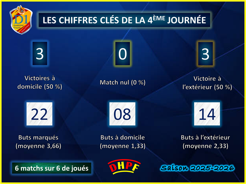 Toutes les rencontres se sont jouées ce samedi 4 octobre, avec des coups d’envoi répartis entre 18h et 20h. Après une trêve marquée par les matchs de coupe, les équipes ont retrouvé le championnat… et les filets ont encore tremblé ! Au total, 22 buts ont été inscrits, dans une journée où les formations en déplacement ont encore fait la loi.