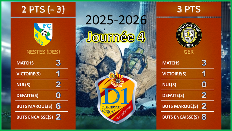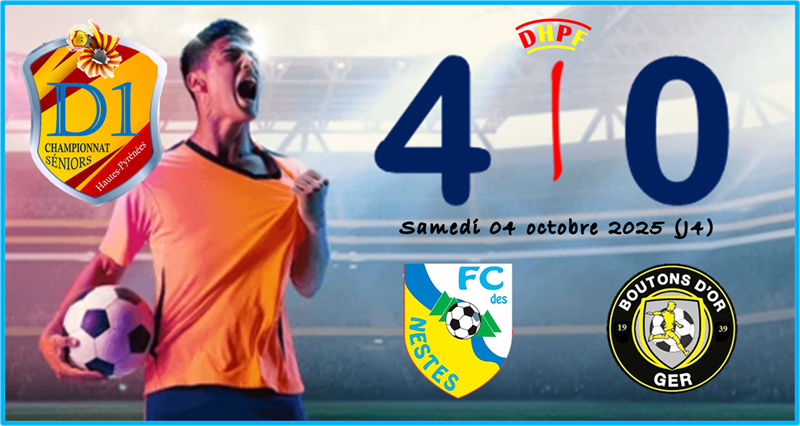 Le FC des Nestes a réalisé le coup parfait lors de cette quatrième journée de championnat de Départemental 1 en s’imposant largement quatre buts à zéro à domicile face aux Boutons d’Or de Ger. Cette rencontre entre deux formations habituées à la D1 a tourné à l’avantage des Nestois, qui ont retrouvé toute leur efficacité offensive et leur rigueur collective.